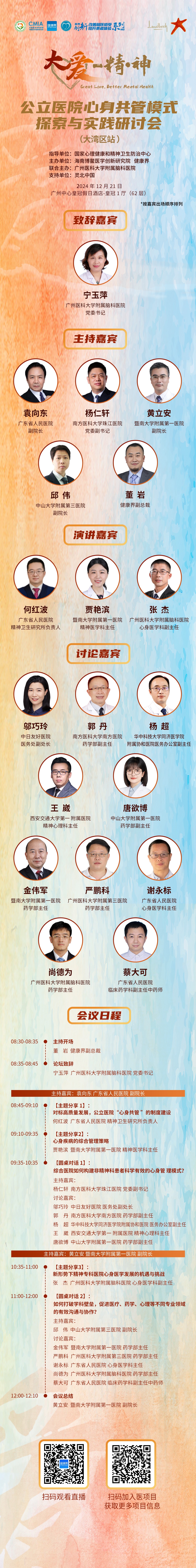 有关本次「大爱-精·神—公立医院心身共管模式探索与实践」专题研讨会(大湾区站)的更详情日程,请见下方海报,同时可扫码观看直播。