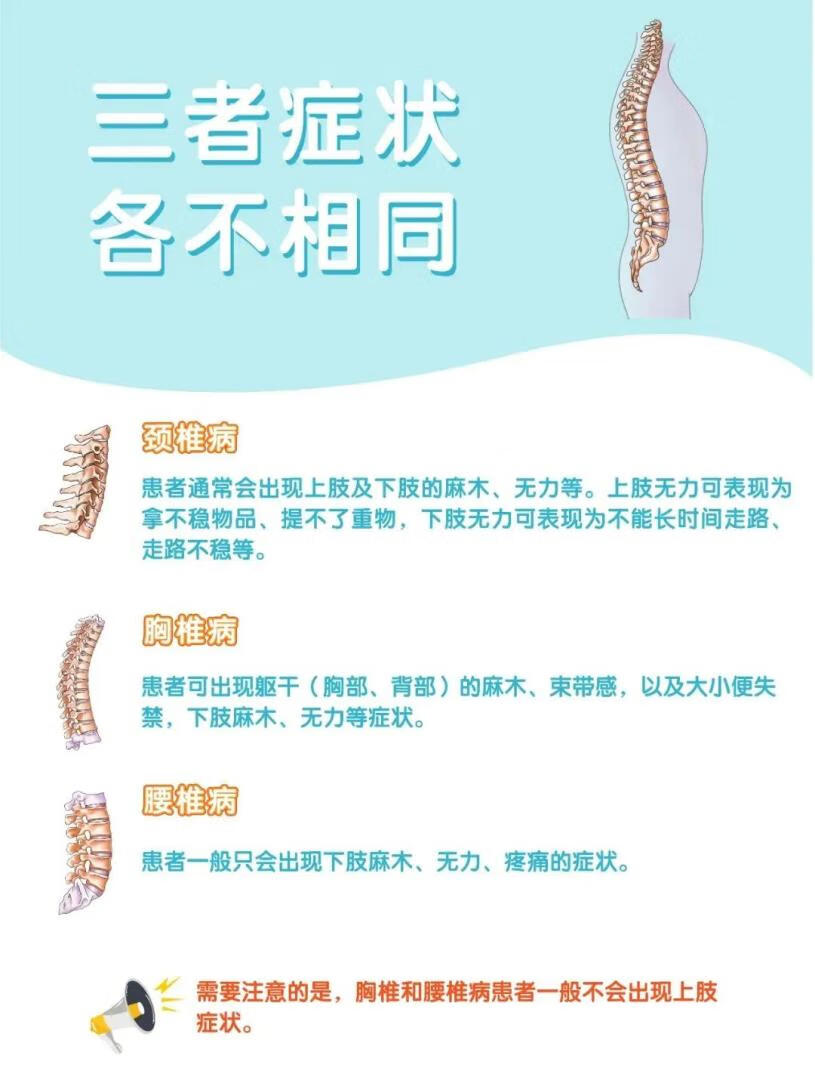 颈椎病、胸椎病、腰椎病都是由各自节段的脊髓受损导致的,医生会通过症状、查体、影像学检查来判断病变的位置。