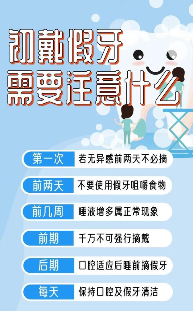 另外,患者应坚持每天戴用活动假牙,可根据自己的习惯每间隔数小时摘戴一次,待口腔适应后,就不要戴假牙入睡了,以免发生误吸、误咽。