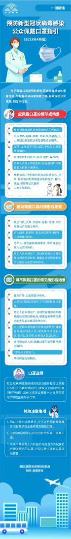 政策链接:关于印发预防新型冠状病毒感染公众佩戴口罩指引(2023年4月版)的通知