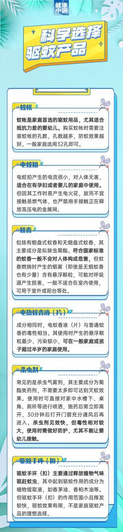 看自我需求:一般家庭室内可选用电热蚊香液(片);在室外空旷或空气流通场所,可选用盘式蚊香;需要短期杀灭大量蚊虫的,可选用杀虫剂;外出游玩者,可随身携带驱蚊液;有婴幼儿和孕妇的家庭,首选物理驱蚊,如蚊帐和电蚊拍等。
