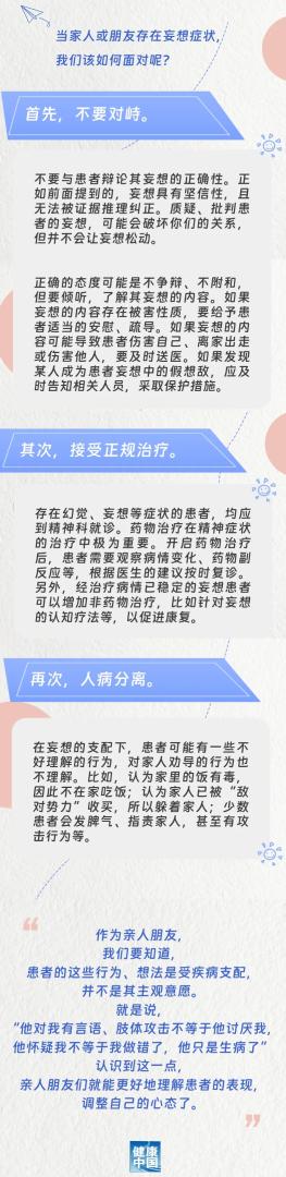 除妄想性障碍外,精神科很多疾病的患者都可能有妄想的症状,比如精神分裂症、双相障碍、抑郁症、痴呆、酒药依赖等患者。