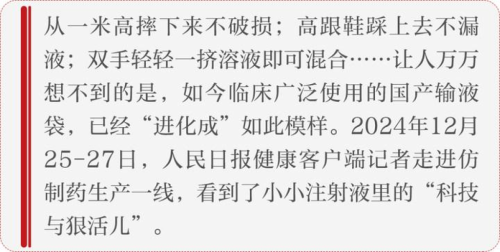 12月30日,国家组织药品联合采购办公室发布《关于公布全国药品集中采购(GY-YD2024-2)中选结果的通知》,第十批国采尘埃落定,62个品种中注射液占35个,注射液占据集采半壁江山。人民日报健康客户端记者,通过走访生产一线发现,低价量产的注射液背后是科技的支撑。